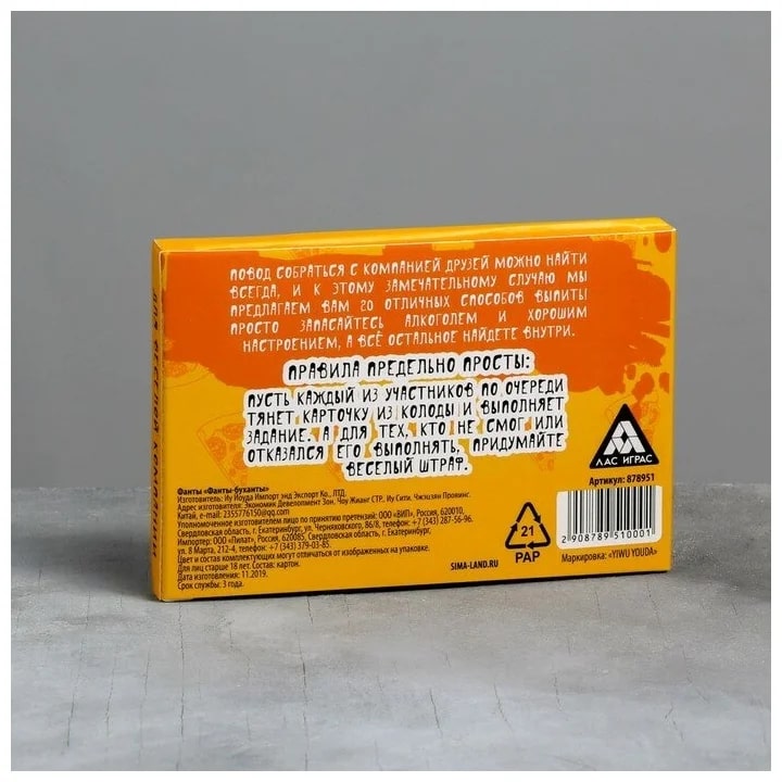 Купить игра для компании "фанты буханты" 20 карт от 100 руб. с доставкой до пункта выдачи в Ишиме. Интернет магазин ДекаМаркет. Оплата при получении.